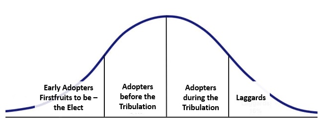 We can see from this typical “Adoption Curve” that the Elect were the first group to worship God and to enter into their wilderness experience. They include those Gentiles who joined them back in the day and were already grafted in (see Caleb).